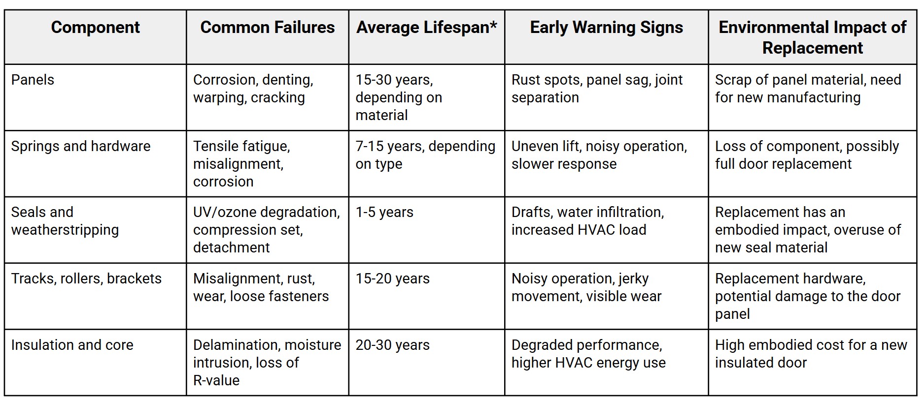 - Modular design: Rather than replacing an entire door, panels, tracks or insulation cores can be replaced, reducing waste and embodied footprint.