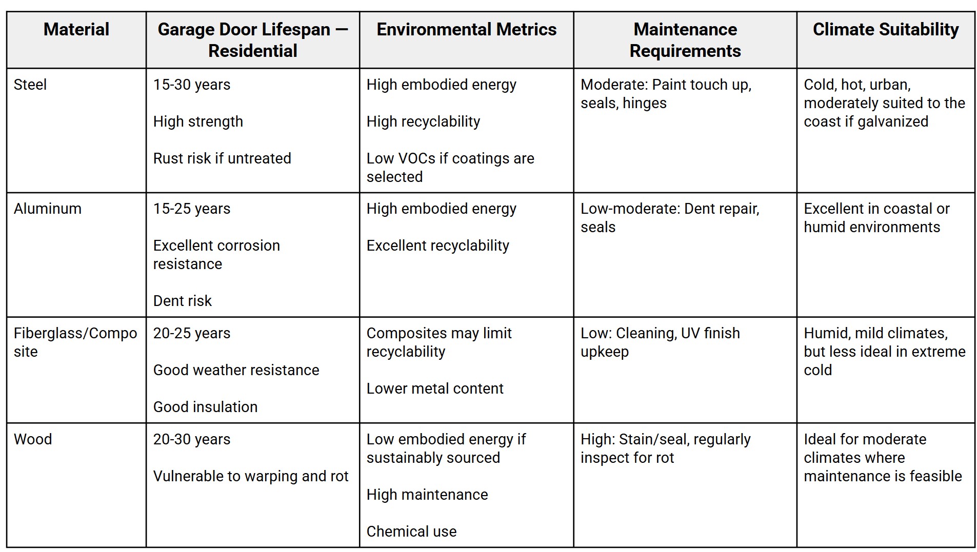 Which Garage Door Materials Require the Least Maintenance While Remaining Environmentally Responsible?
