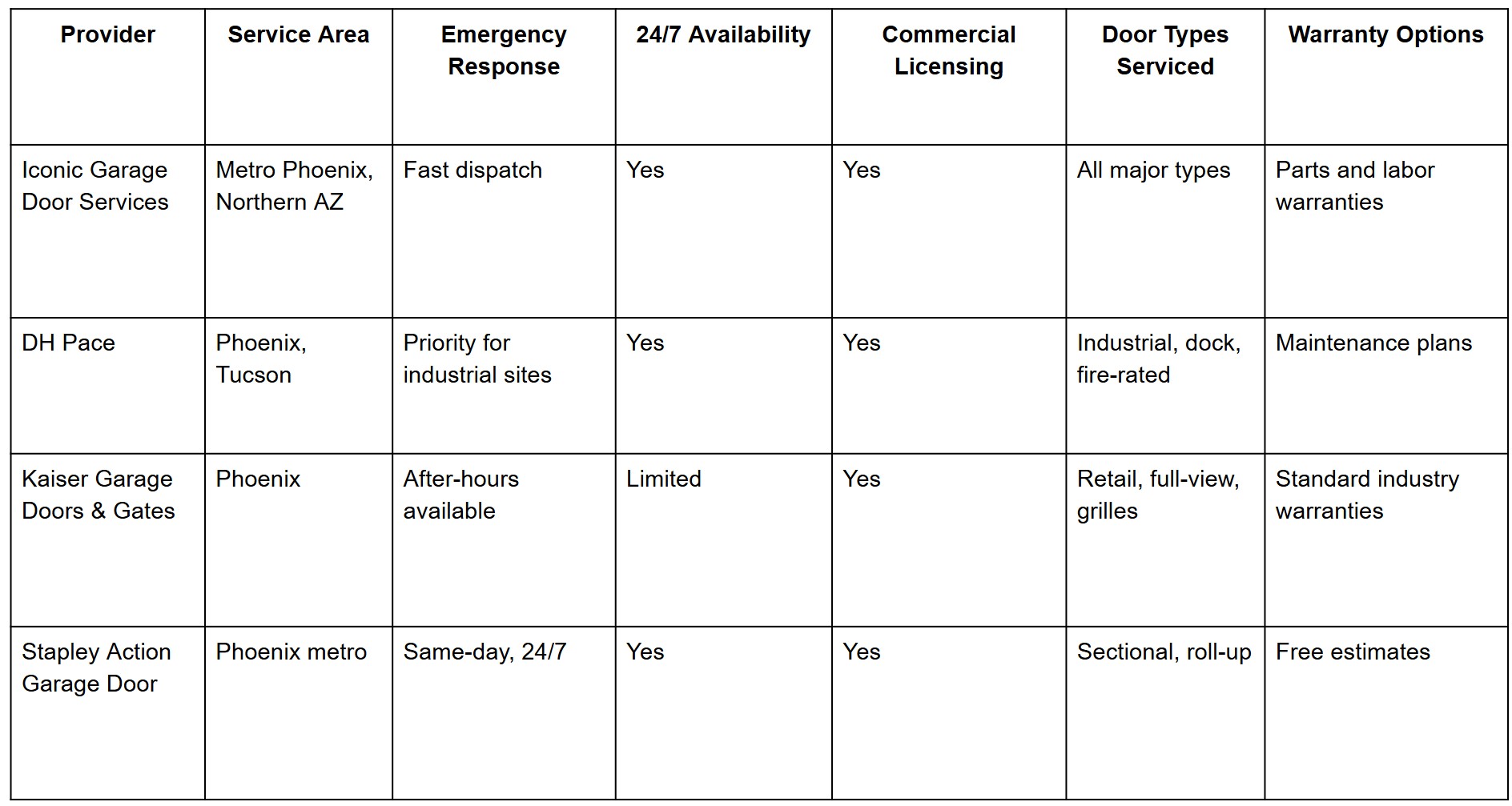 Businesses can better compare industrial door repair near them with a side-by-side overview of each provider, considering coverage, licensing, emergency response and warranty options.
