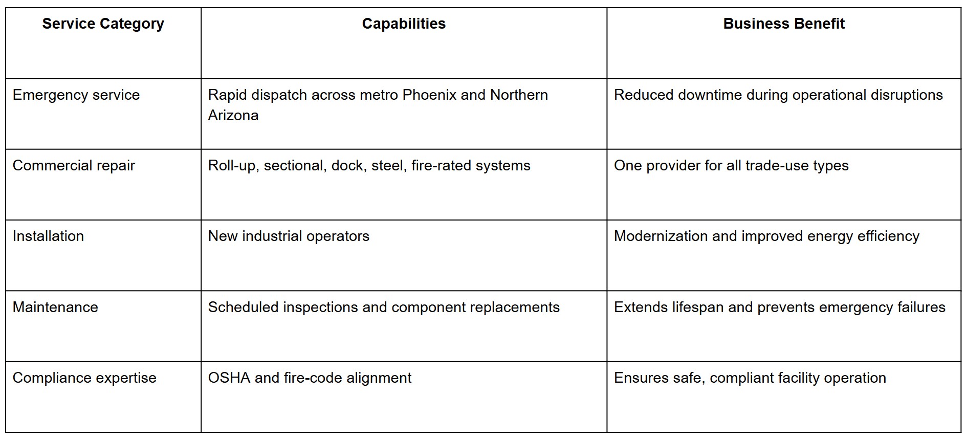 To select the strongest commercial overhead door company in Arizona, this analysis considered: