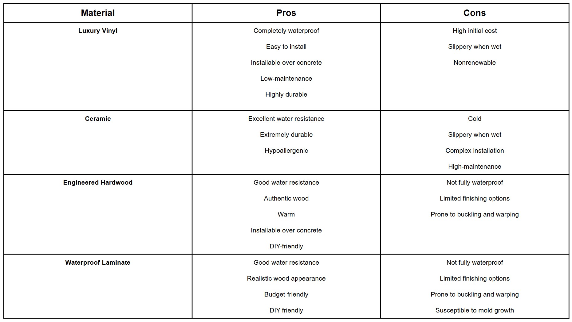 Consider these factors when deciding which type of waterproof flooring to use in each room: