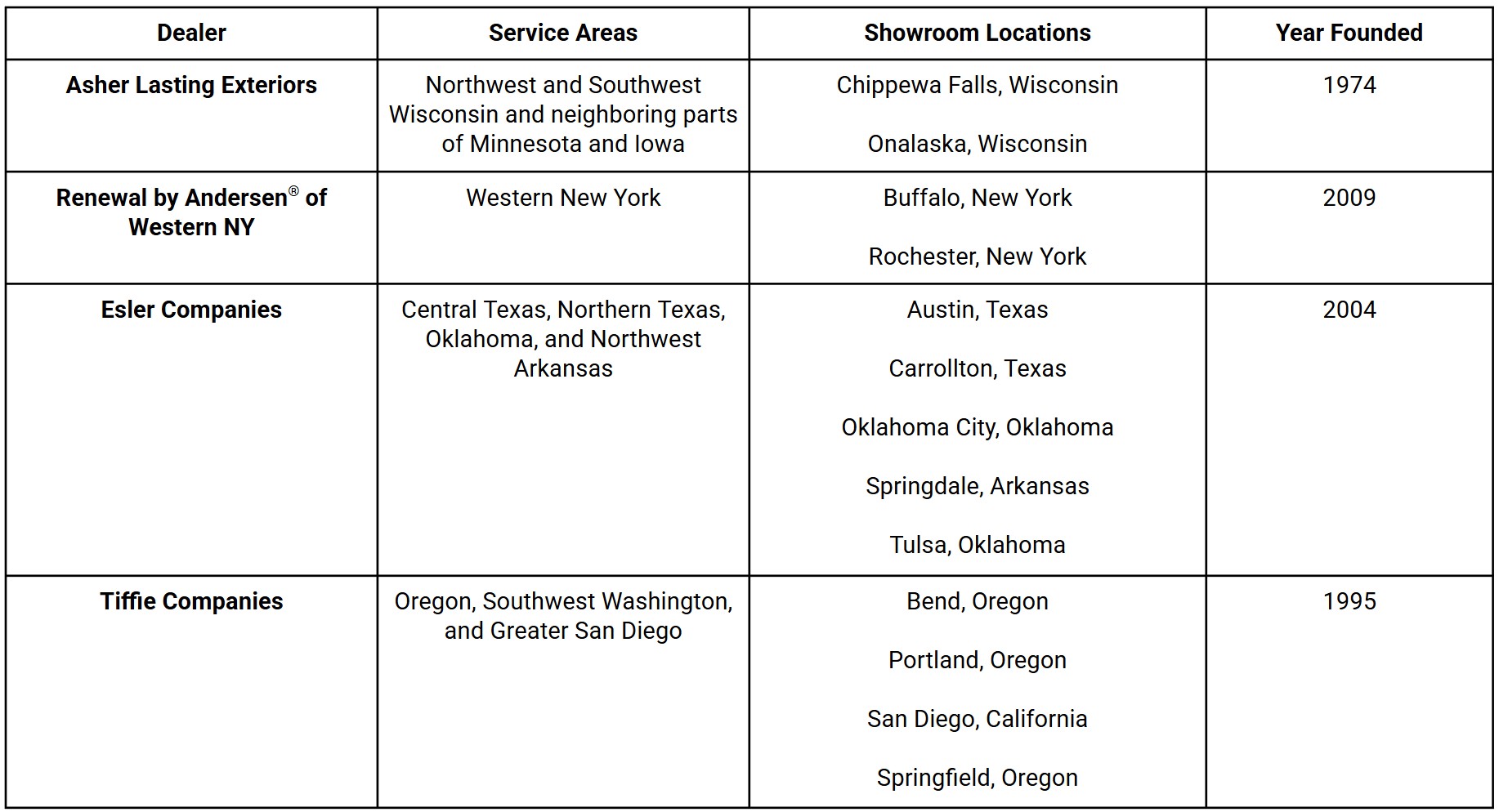 These four legitimate window dealers are among the top affiliates in Renewal by Andersen®’s extensive network. Contact the one that serves your area to discuss your projects and get the best deal.