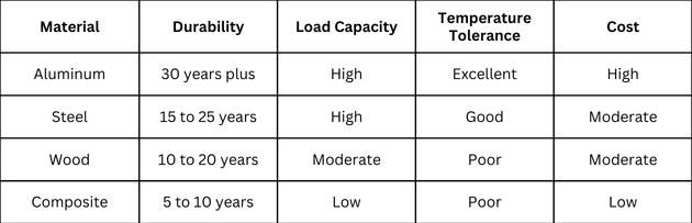 If your budget allows, aluminum is a superior choice. It offers strength and corrosion resistance. Unlike steel and wood, it won’t rust or warp. Aluminum may pay for itself if you want to buy cabinets that last 20 years or longer. Aluminum can be recycled indefinitely, making it a more sustainable option.