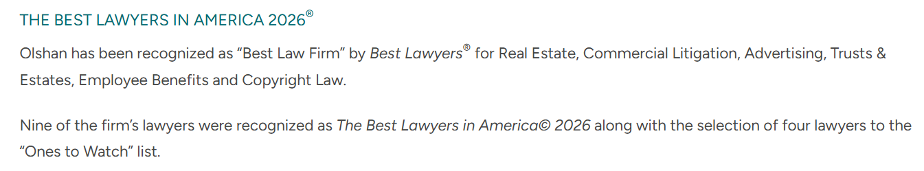 - Recognized as “Best Law Firm” by Best Lawyers for Real Estate